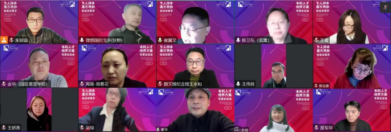 本科人才培养方案是实现高校人才培养的纲领性文件,是推动专业建设的基本保障,为进一步加强本科专业内涵建设,探索特色鲜明的人才培养途径,培养高素质复合型应用人才,苏州科技大学艺术学院分别于2023年1月13日和15日晚间通过线上会议的形式,召开了两场2023版本科人才培养方案修订专家论证会议。论证会议由副院长狄野主持,学院党委书记陈卫东,副院长(主持工作)莫军华,副院长崔冀文,各学科负责人,专业负责人,系主任等40余人参与了论证会。