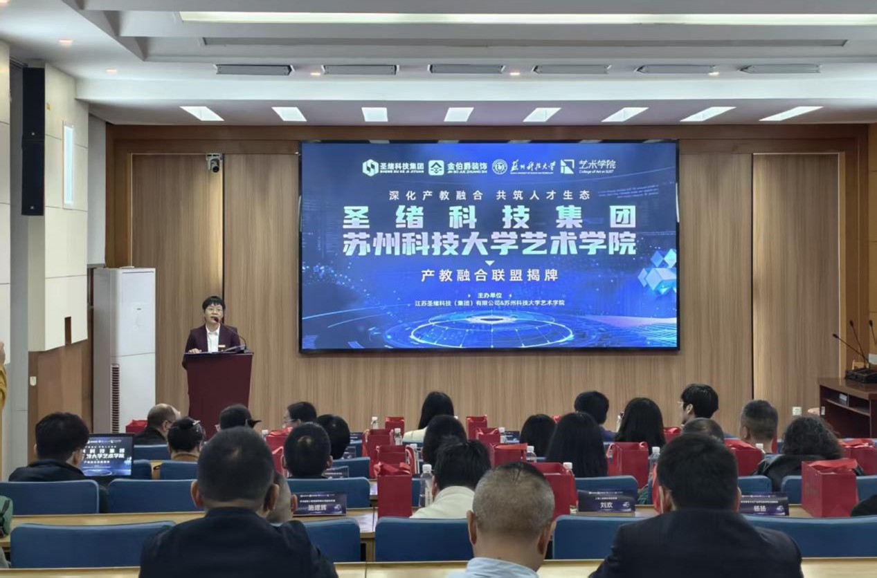 4月11日下午,艺术学院与圣绪科技集团联合主办,我校数字化产业研究所协办的产教融合联盟揭牌仪式正式举行。艺术学院党委书记林海、圣绪科技集团董事长陈绪田、苏州大学与南通理工学院等兄弟高校教师,以及艺术学院部分教师代表参加了活动。活动由数字化产业研究所所长邵斌主持。