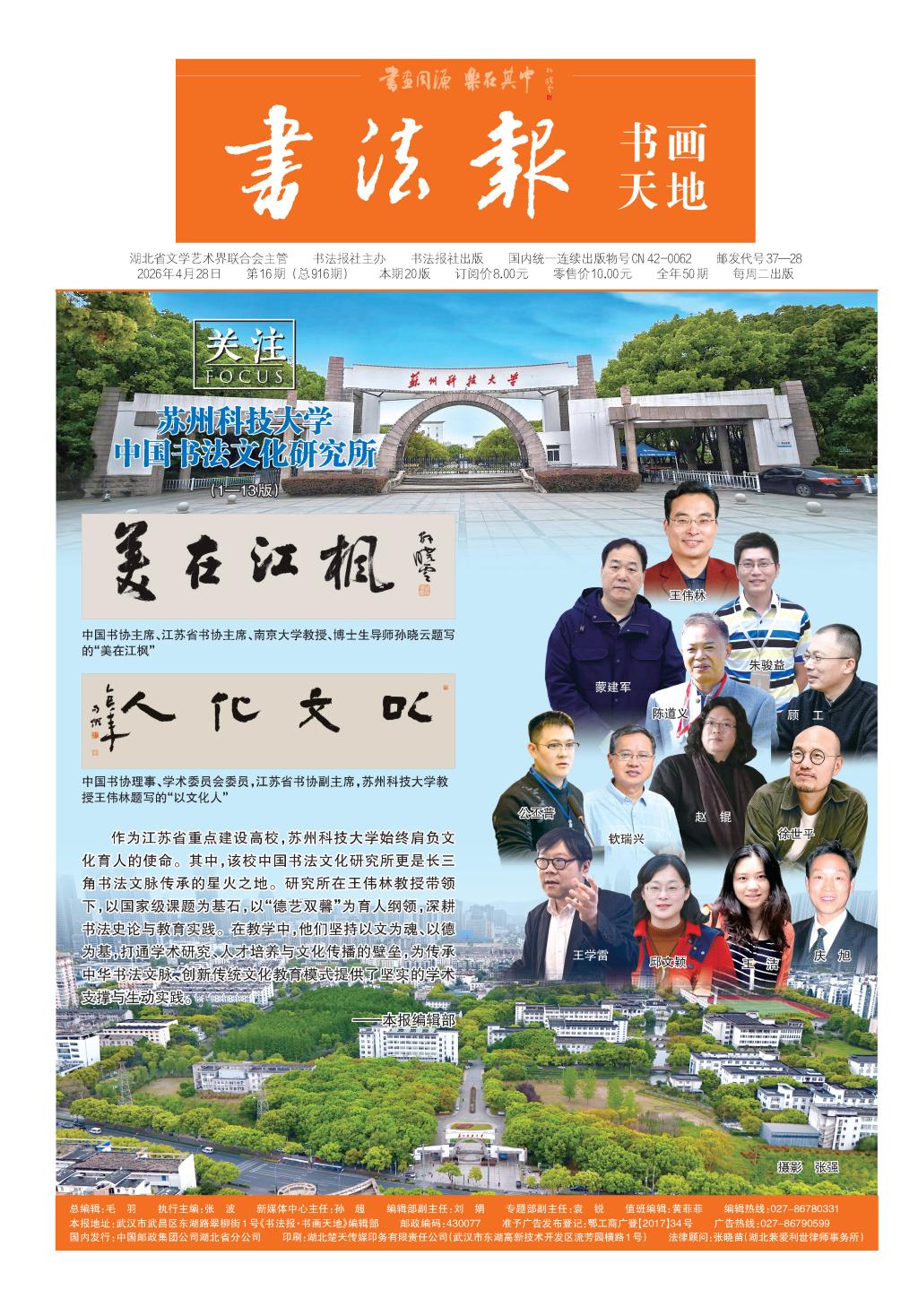 4月28日,《书法报》(书画天地,2026年第16期)以13个整版的篇幅,集中刊发我校艺术学院“中国书法文化研究所”专题,全面展现我校艺术学院书法学科的建设情况与育人成效。