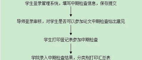 5.中期检查结束后,学院将《硕士学位论文中期检查登记表》存档,同时将《硕士学位论文中期检查情况统计表》报研究生院备案。